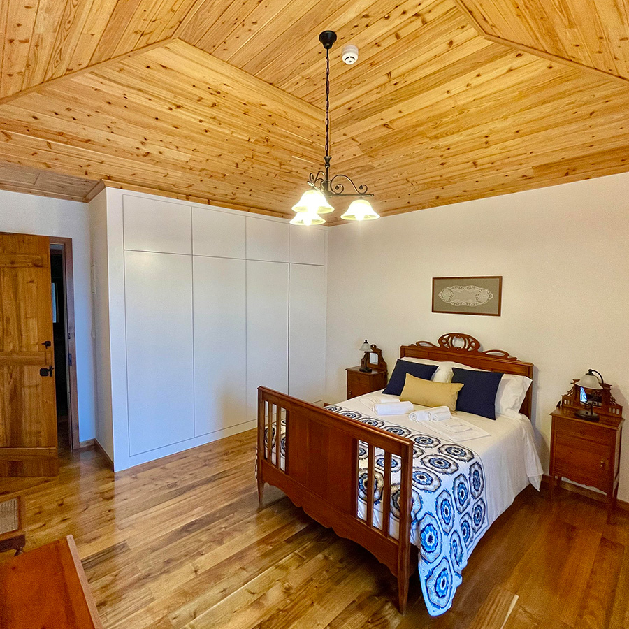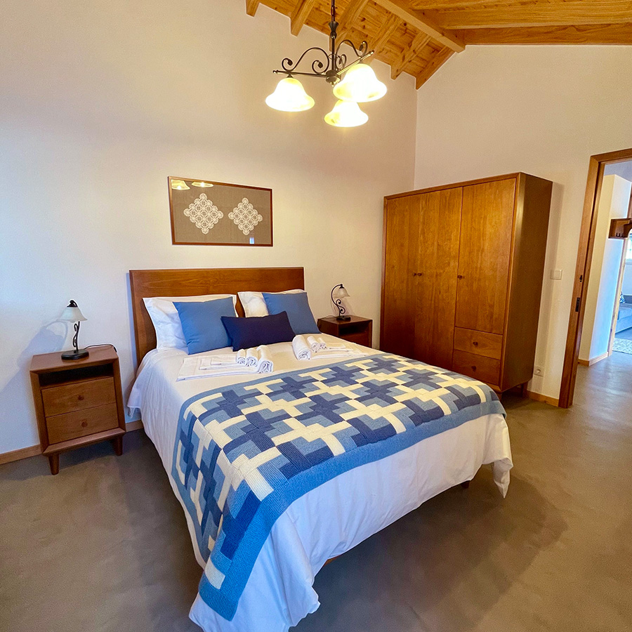A casa principal com capacidade para 6 pessoas (+ cama extra), é um T3 com duas camas de casal,