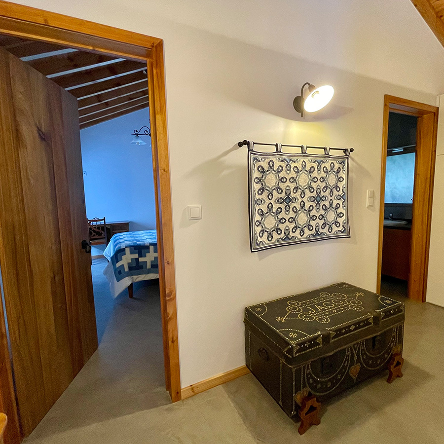 A unidade de alojamento secundária, denominada “Palheiro das Alfaias”, com capacidade para 2 pessoas (+ sofá-cama), é um T1 com uma cama de casal,